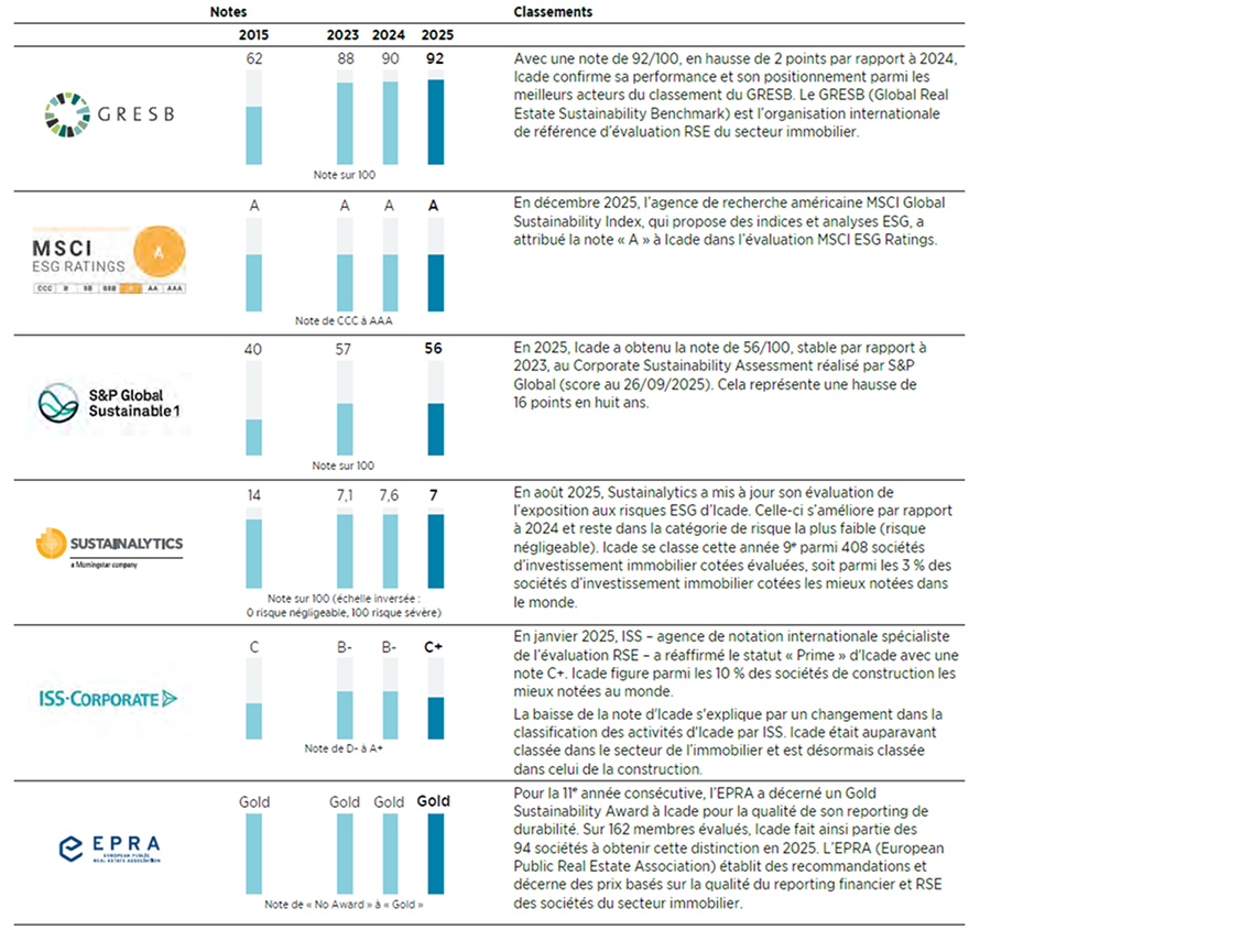 Chaque année, les agences de notation extra-financière analysent notre performance RSE à l’aune des meilleures pratiques sectorielles, une évaluation qui nous permet de suivre et d’améliorer en continu notre politique RSE.
